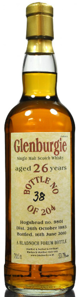 Nose: Very big aroma, this leaps, or rather, attacks you, with a soothing friendly voice, from the glass. Nutty and fruity. Meaty and dusty. Some soft old oak right after that. Dusty old oak. Quite big and holding a promise of sweetness, sweet (and meaty) apples rather than the usual Sherry notes. The oak has an aroma reminiscent of tobacco and leather and hints of old Calvados. Very fragrant Glenburgie. Nice and spicy. In fact, this holds it all. Quite balanced, and very big, it’s so big it hides the complexity a bit. Try not to forget, this is a 26yo Malt. It doesn’t show a lot of evolution over time as well, it stays more or less the same when nosing it. But with a Malt so big and nice, who needs complexity and evolution?